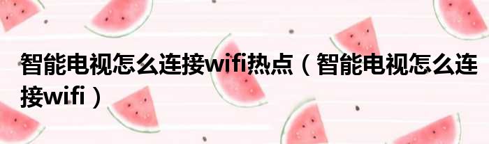 智能电视怎么连接wifi热点(智能电视怎么连接wifi)