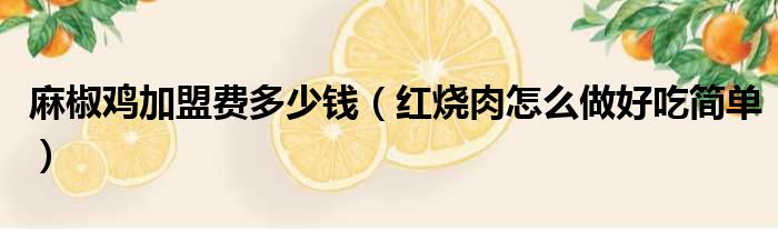 麻椒鸡加盟费多少钱(红烧肉怎么做好吃简单)