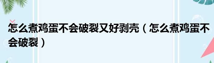 怎么煮鸡蛋不会破裂又好剥壳(怎么煮鸡蛋不会破裂)