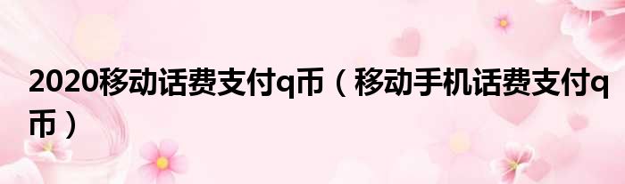 大家好,小活来为大家解答以上问题。2020移动话费支付q币,移动手机话费支付q币很多人还不知道,现在让我们一起来看看吧!