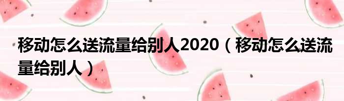 移动怎么送流量给别人2020(移动怎么送流量给别人)