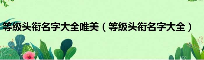 大家好,小活来为大家解答以上问题。等级头衔名字大全唯美,等级头衔名字大全很多人还不知道,现在让我们一起来看看吧!