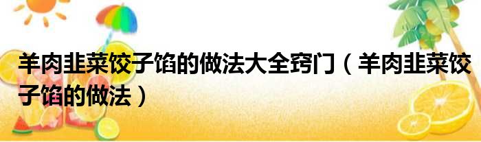 羊肉韭菜饺子馅的做法大全窍门(羊肉韭菜饺子馅的做法)