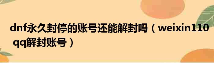 dnf永久封停的账号还能解封吗(weixin110 qq解封账号)