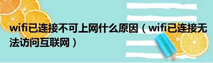 wifi已连接不可上网什么原因(wifi已连接无法访问互联网)
