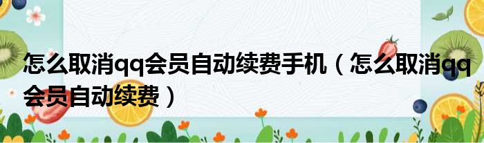 怎么取消qq会员自动续费手机(怎么取消qq会员自动续费)