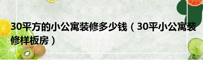 30平方的小公寓装修多少钱(30平小公寓装修样板房)
