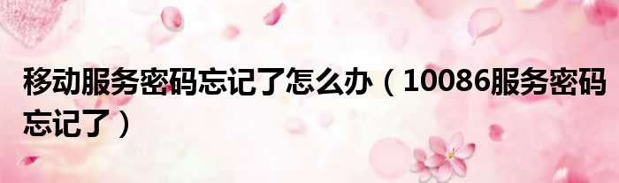 移动服务密码忘记了怎么办(10086服务密码忘记了)