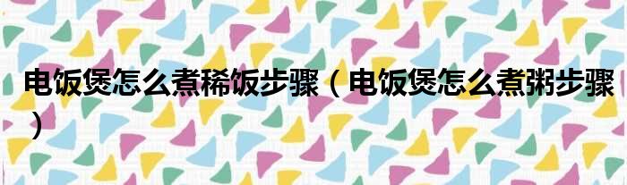 电饭煲怎么煮稀饭步骤(电饭煲怎么煮粥步骤)