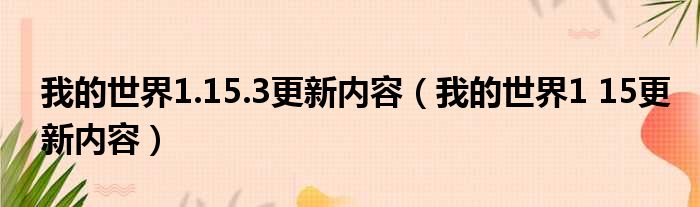 我的世界1.15.3更新内容(我的世界1 15更新内容)