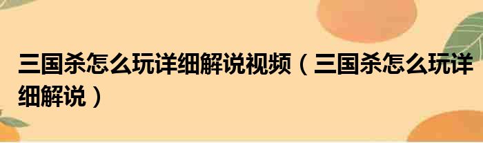 三国杀怎么玩详细解说视频(三国杀怎么玩详细解说)