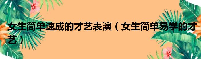 女生简单速成的才艺表演(女生简单易学的才艺)