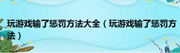 玩游戏输了惩罚方法大全(玩游戏输了惩罚方法)