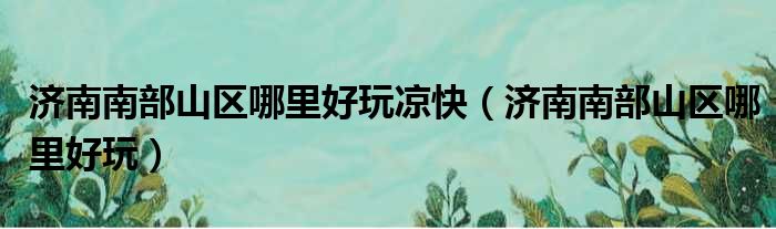 济南南部山区哪里好玩凉快(济南南部山区哪里好玩)