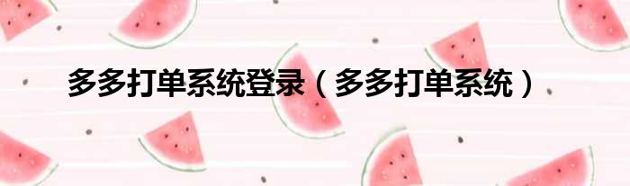 大家好,小活来为大家解答以上问题。多多打单系统登录,多多打单系统很多人还不知道,现在让我们一起来看看吧!