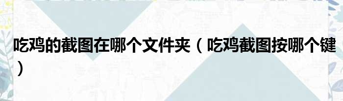 吃鸡的截图在哪个文件夹(吃鸡截图按哪个键)