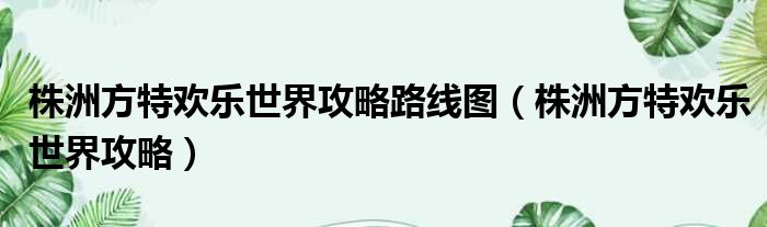 株洲方特欢乐世界攻略路线图(株洲方特欢乐世界攻略)