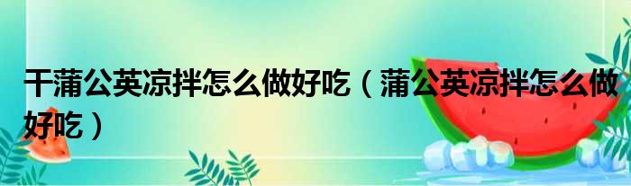 干蒲公英凉拌怎么做好吃(蒲公英凉拌怎么做好吃)