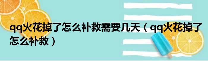 qq火花掉了怎么补救需要几天(qq火花掉了怎么补救)