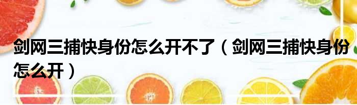 剑网三捕快身份怎么开不了(剑网三捕快身份怎么开)