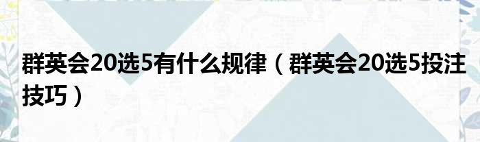 导读 大家好,小活来为大家解答以上问题。群英会20选5有什么规律,群英会20选5投注技巧很多人还不知道,现在让我们一起来看看吧!1、第一,冷静