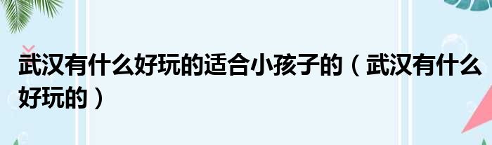 武汉有什么好玩的适合小孩子的(武汉有什么好玩的)