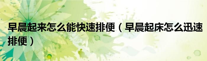 早晨起来怎么能快速排便(早晨起床怎么迅速排便)