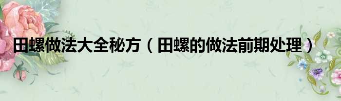 大家好,小活来为大家解答以上问题。田螺做法大全秘方,田螺的做法前期处理很多人还不知道,现在让我们一起来看看吧!