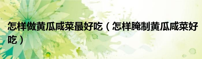 怎样做黄瓜咸菜最好吃(怎样腌制黄瓜咸菜好吃)