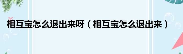 相互宝怎么退出来呀(相互宝怎么退出来)