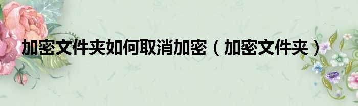 加密文件夹如何取消加密(加密文件夹)