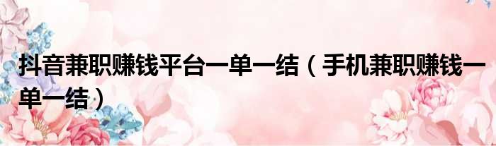 抖音兼职赚钱平台一单一结(手机兼职赚钱一单一结)