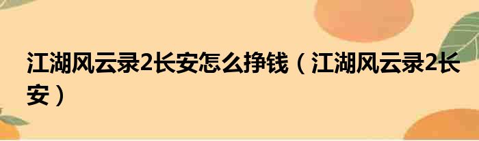 江湖风云录2长安怎么挣钱(江湖风云录2长安)