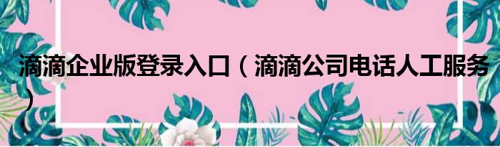 滴滴企业版登录入口(滴滴公司电话人工服务)