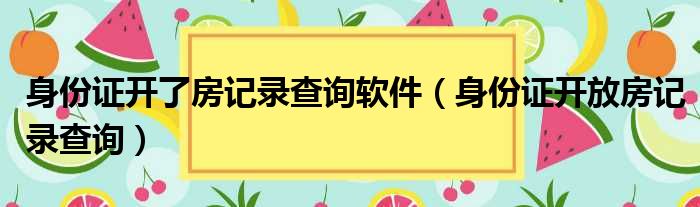 身份证开了房记录查询软件(身份证开放房记录查询)