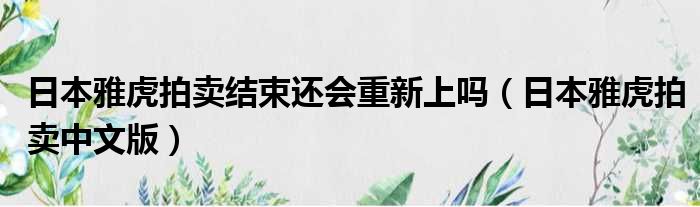 日本雅虎拍卖结束还会重新上吗(日本雅虎拍卖中文版)