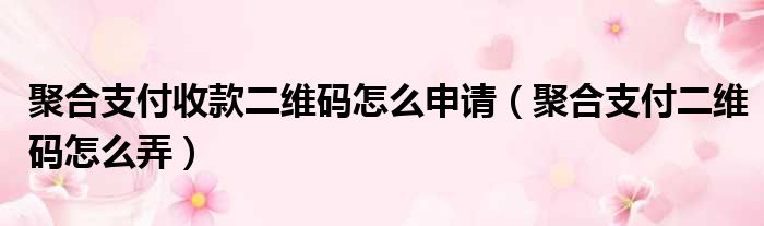 聚合支付收款二维码怎么申请(聚合支付二维码怎么弄)