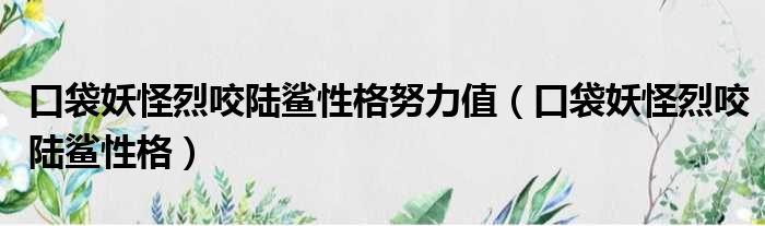 口袋妖怪烈咬陆鲨性格努力值(口袋妖怪烈咬陆鲨性格)