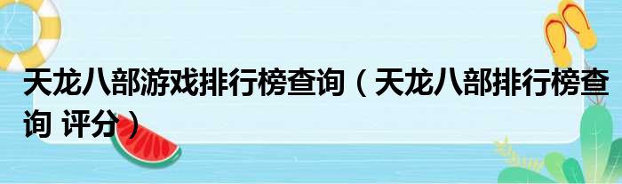 天龙八部游戏排行榜查询(天龙八部排行榜查询 评分)