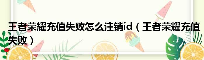 王者荣耀充值失败怎么注销id(王者荣耀充值失败)