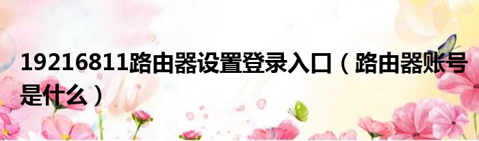 19216811路由器设置登录入口(路由器账号是什么)