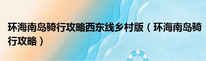 环海南岛骑行攻略西东线乡村版(环海南岛骑行攻略)