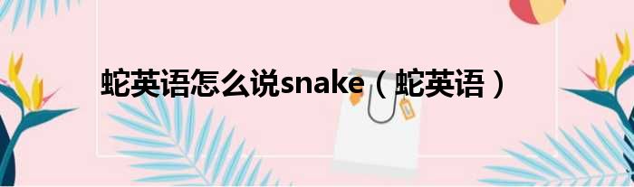 大家好,小活来为大家解答以上问题。蛇英语怎么说snake,蛇英语很多人还不知道,现在让我们一起来看看吧!