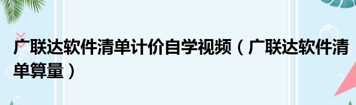 广联达软件清单计价自学视频(广联达软件清单算量)