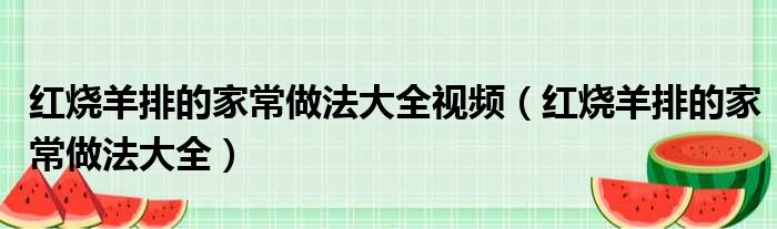 红烧羊排的家常做法大全视频(红烧羊排的家常做法大全)