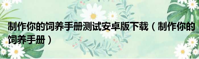 制作你的饲养手册测试安卓版下载(制作你的饲养手册)