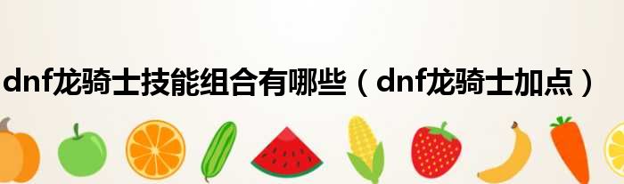 dnf龙骑士技能组合有哪些(dnf龙骑士加点)