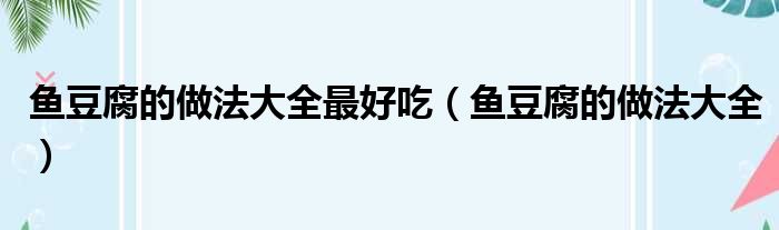 鱼豆腐的做法大全最好吃(鱼豆腐的做法大全)
