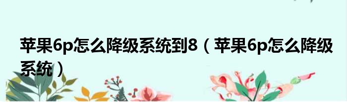 苹果6p怎么降级系统到8(苹果6p怎么降级系统)