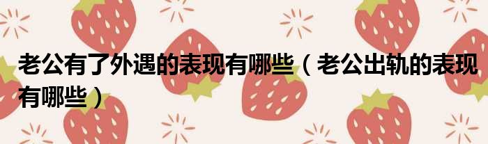 老公有了外遇的表现有哪些(老公出轨的表现有哪些)